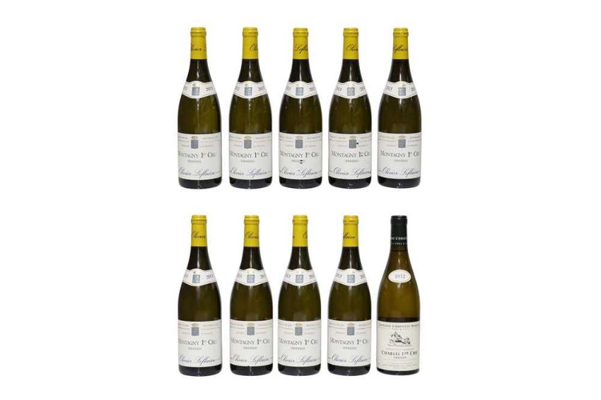 Assorted White Burgundy, to include: Montagny, 1er Cru, Perrieres, Olivier Leflaive, 2013, nine bottles and Chablis, 1er Cru, Vaillon, Cuvee Guy Moreau, Christian Moreau, 2012, one bottle, ten bottles in total