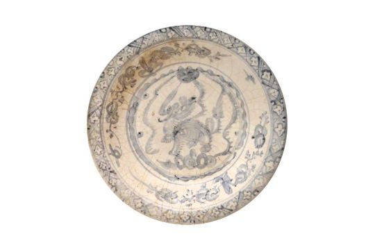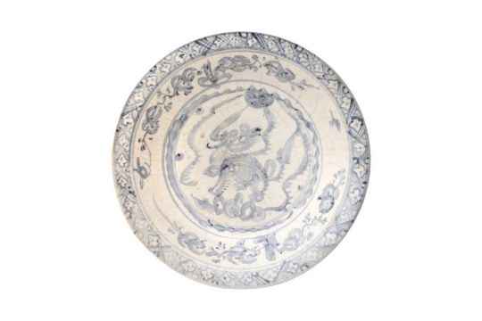 A CHINESE BLUE AND WHITE 'QILIN' CHARGER