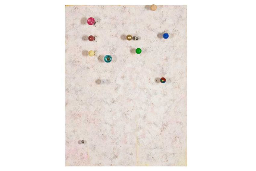 acrylic, wallpaper, plywood, light bulbs, wood