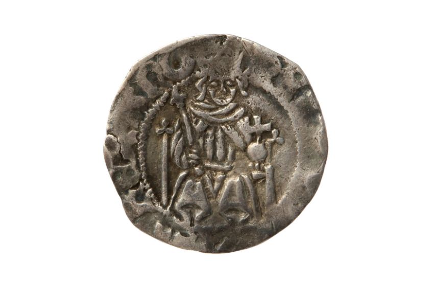 Silver, 0.69 g, 15.6 mm, 11h, mintmark -. Obv: Full-length, enthroned bust of Henry VII facing. Rev: Long cross fourchee over shield of arms, two keys below. S. 2235. Fine.