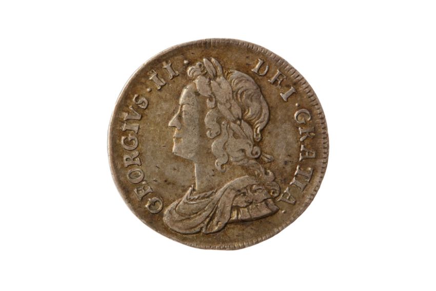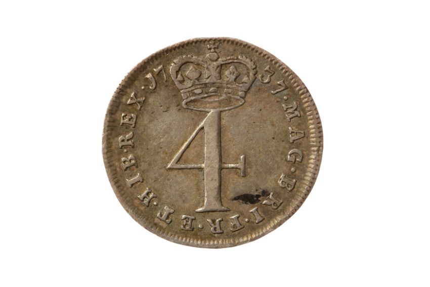 Obv: Young, laureate and draped bust of George II facing left. Rev: Crowned 4, crown with double arches and pearls. S. 3172A. Good Very Fine.