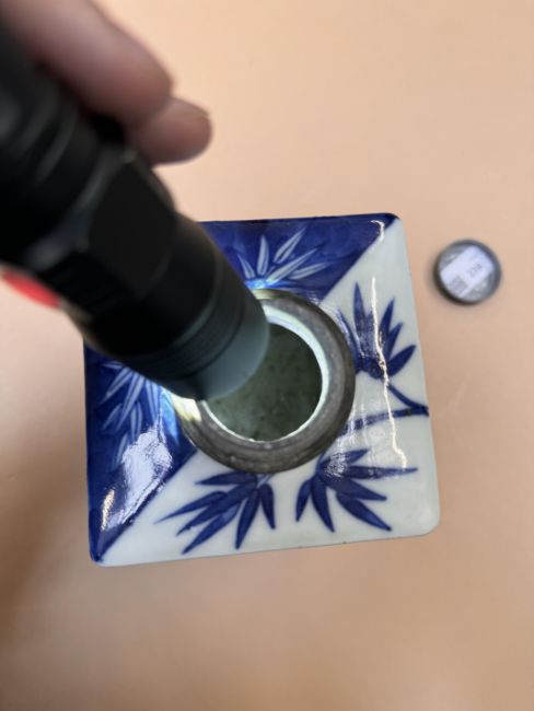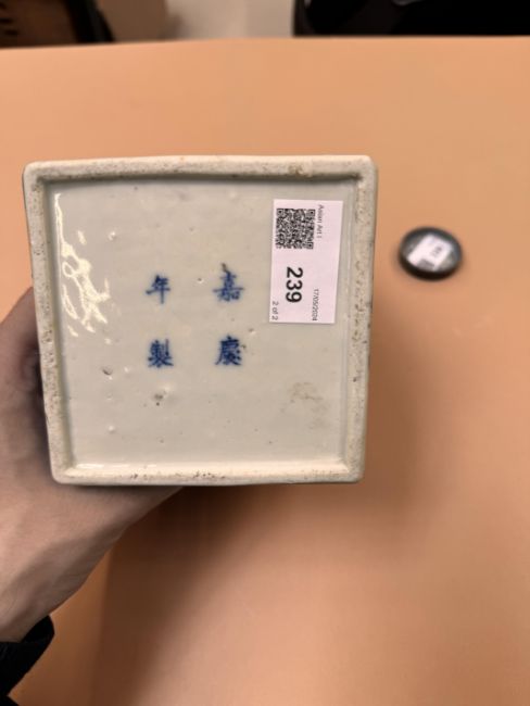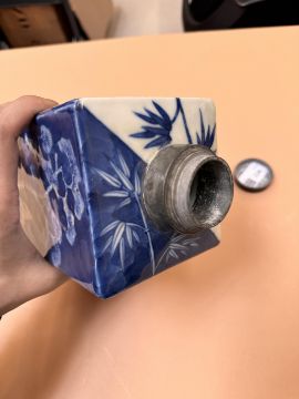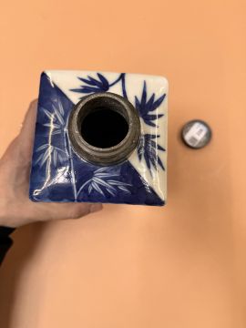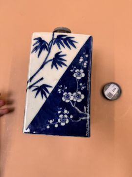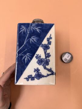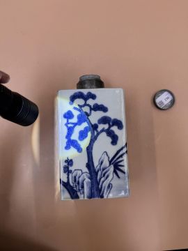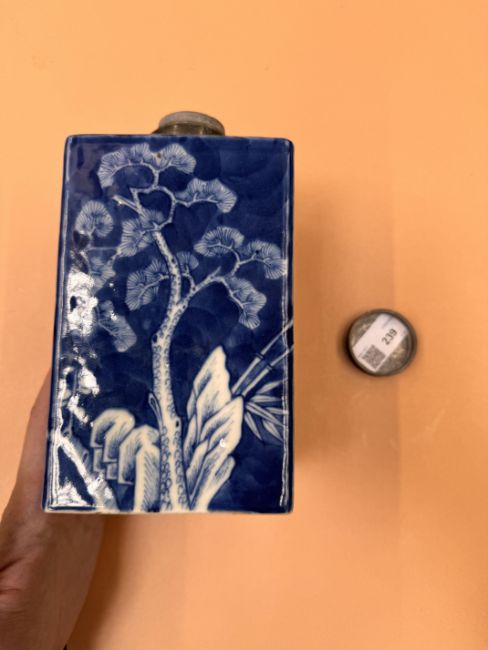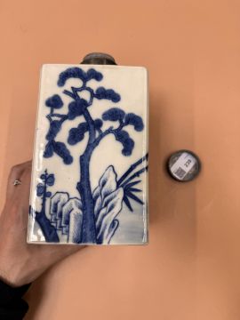 清嘉慶 青花歲寒三友方罐