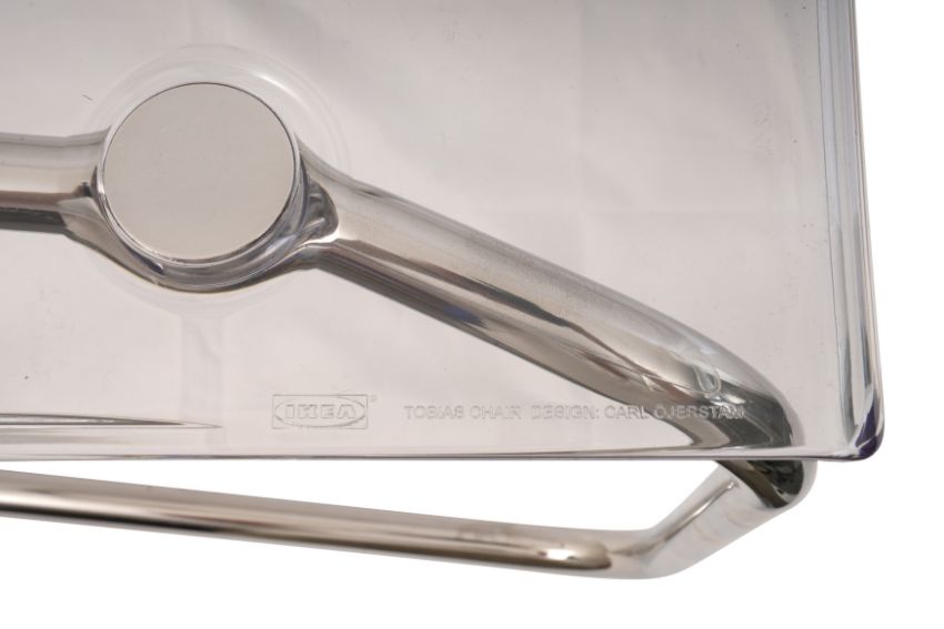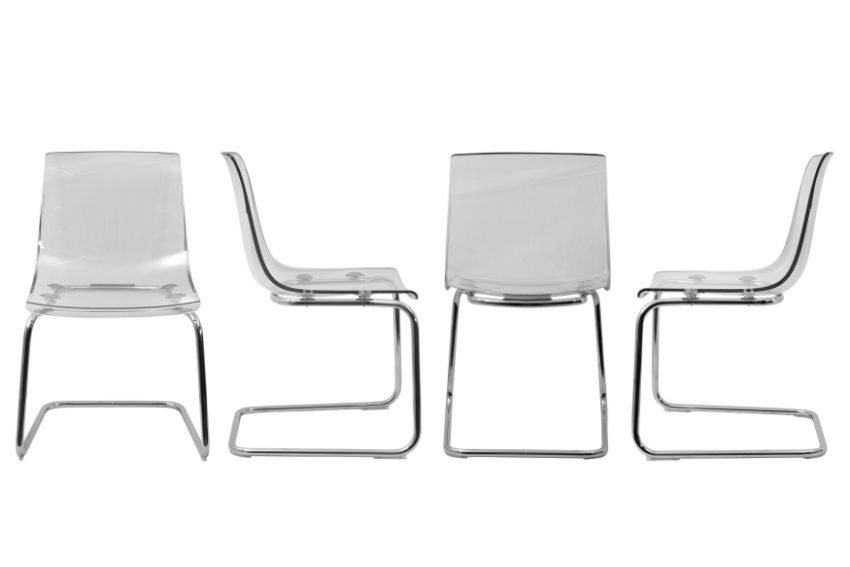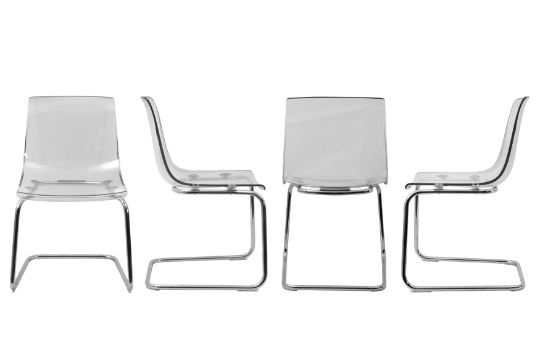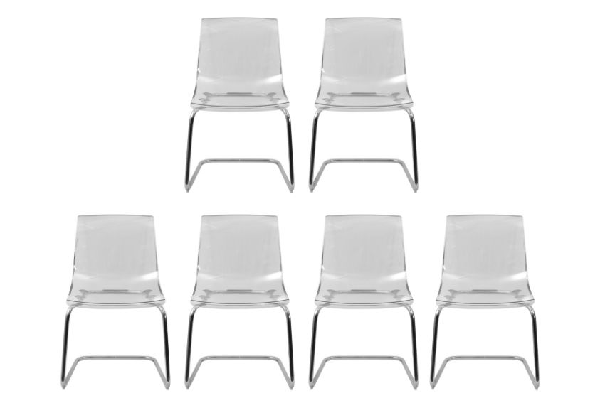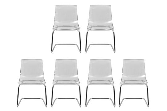 A SET OF SIX CONTEMPORARY PERSPEX CANTILEVER CHAIRS, designed by Carl Ojerstam for Ikea, each with a perspex seat, raised over chrome cantilever legs.
