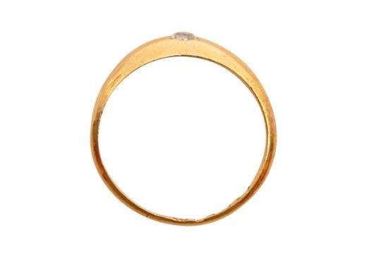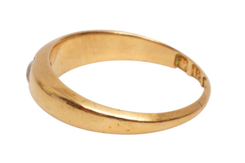 18CT GOLD SINGLE STONE DIAMOND RING, CIRCA 1956, The flushed old-cut diamond, set in a tapered band of yellow gold, UK hallmark, size K½, weight 2.8 grams