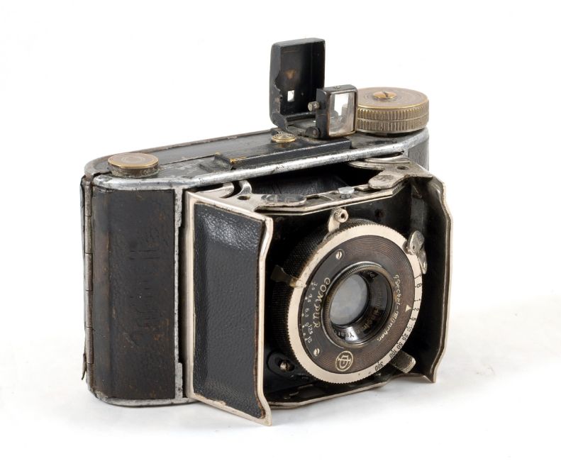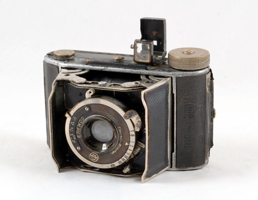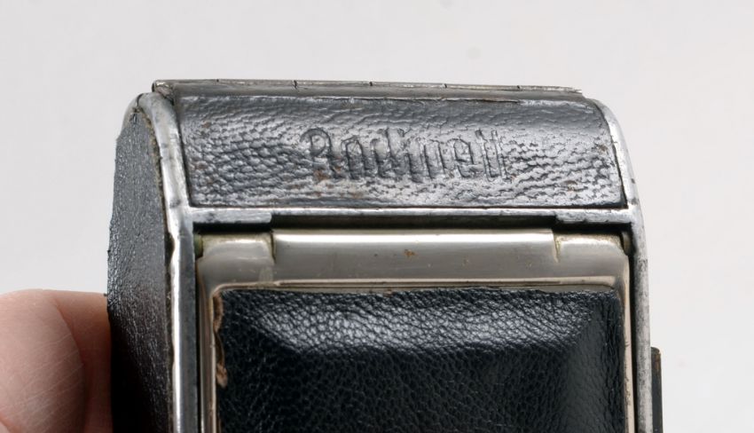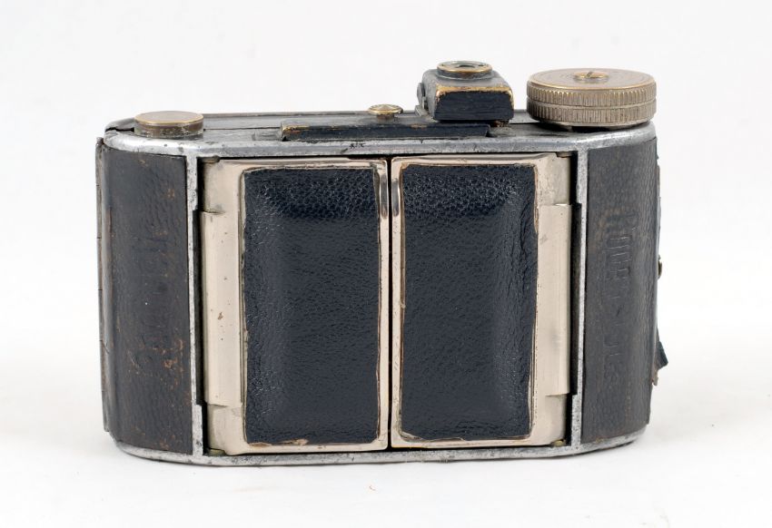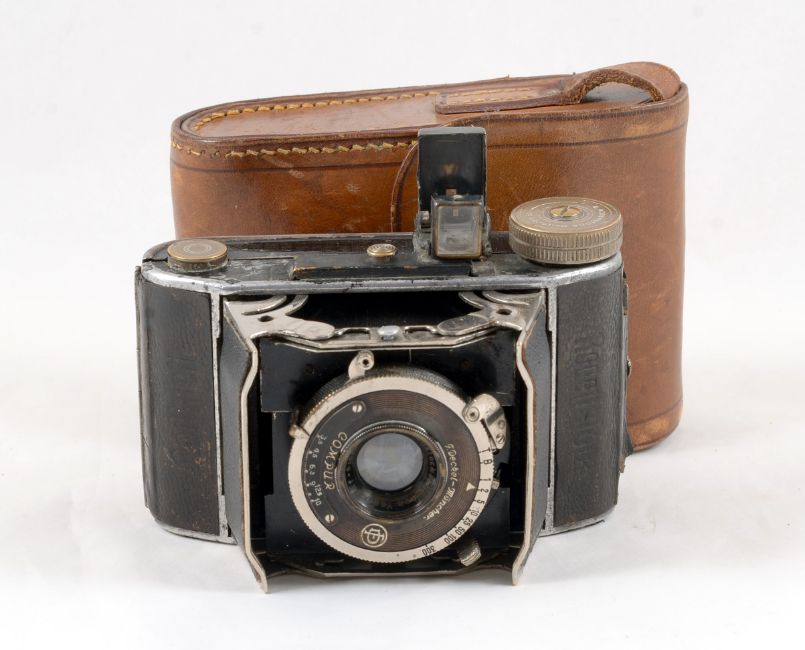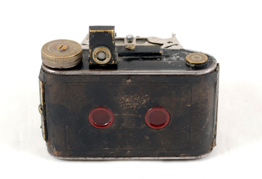 Rare Rodenstock Rodinett 127 "Barn Door" Camera. Takes 3cm x 4cm images on 127 film. Fitted with a Rodenstock Ysar 5cm f3.5 lens. Shutter firing. Signs of heavy use, replacement covering to "barn doors". With case.