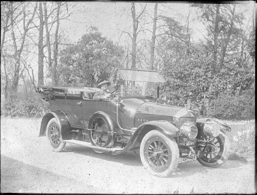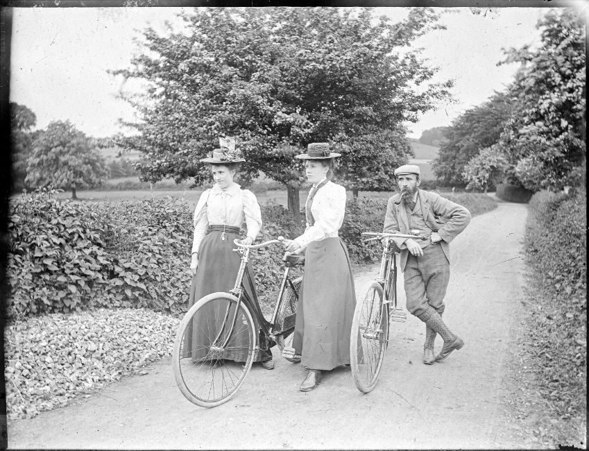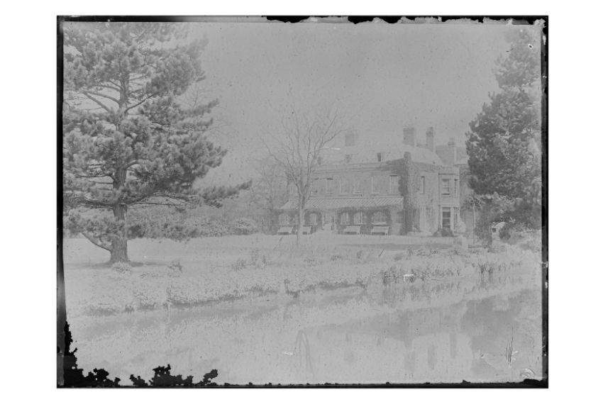 A group of 14 glass whole plate negatives, early 20th century, depciting various UK subjects, including early motoring, cycling, shooting, and country house landscape scenes. Each measuring 165 x 215mm, housed in a wooden box with spacers, overall measuring 200 x 275 x 105mm.