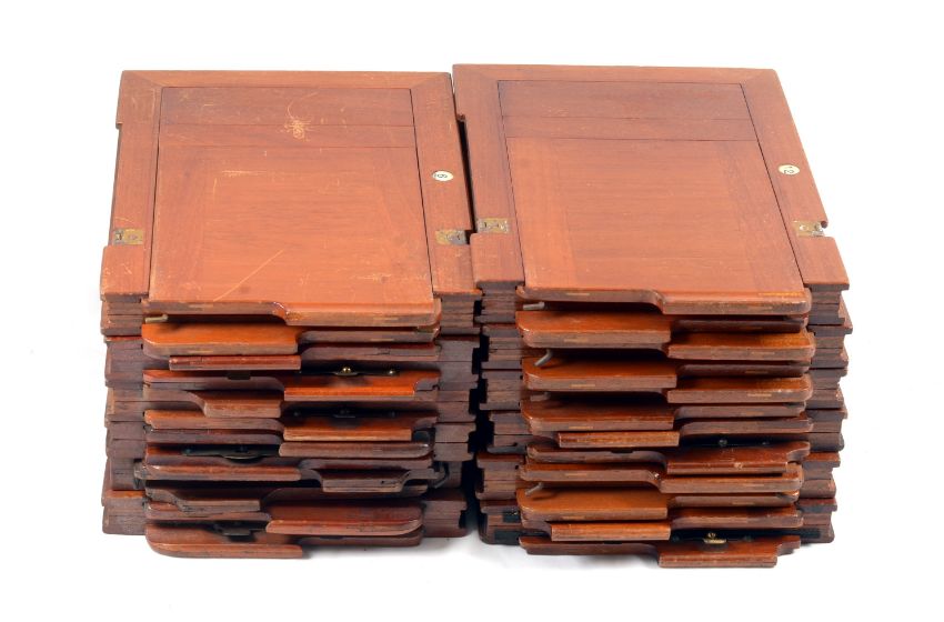 Group of Twelve Mahogany Half Plate Double Dark Slides. All with signs of normal use.