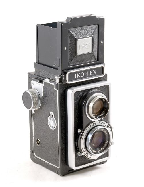 Zeiss Ikon Ikoflex 1a TLR. Circa 1954. #773432. With 75mm f3.5 Tessar. With transparent lens cap. Shutter firing, signs of light use.