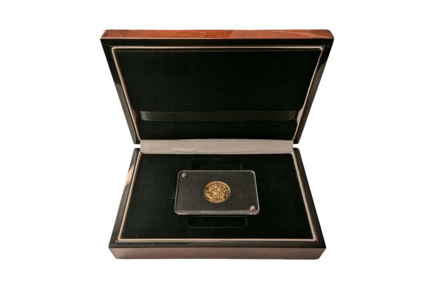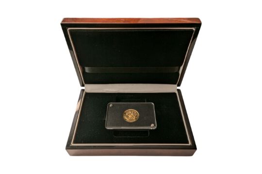 Struck to celebrate the birth of Princess Charlotte on 2nd May 2015. Obv: Head of Elizabeth II facing right, crowned with the 'Girls of Great Britain and Ireland Tiara'. Rev: British arms. 8.24 grams of 22 ct (.916) gold. Proof FDC, offered in a London Mint Office presentation case.