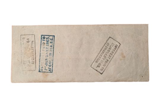 Date: 24/06/1862, S/N: 8521. Stamps: INTEREST PAID TO 1ST JANUARY 1863. AT CHARLESTON, INTEREST PAID TO 1ST JANUARY 1864. AT CHARLESTON, INTEREST PAID TO 1ST JANUARY 1865. AT COLUMBIA. S.C. P. 44. Good Extremely Fine.