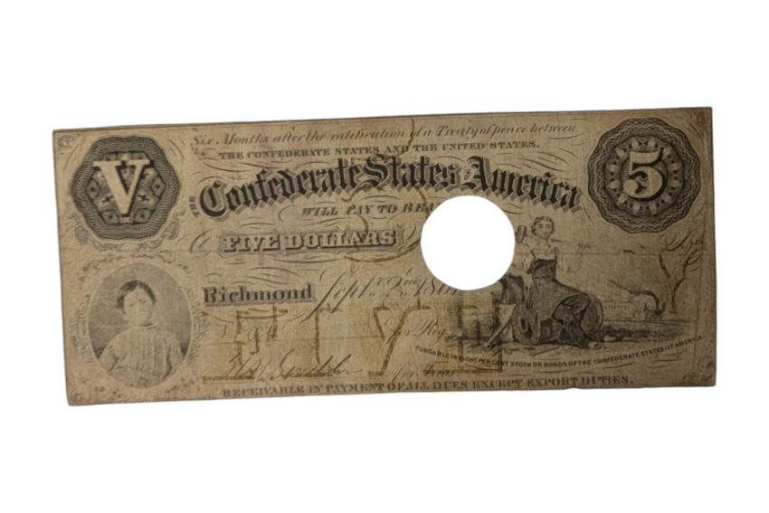 CONFEDERATE STATES, 3x 5 DOLLARS T11, T31, T32.