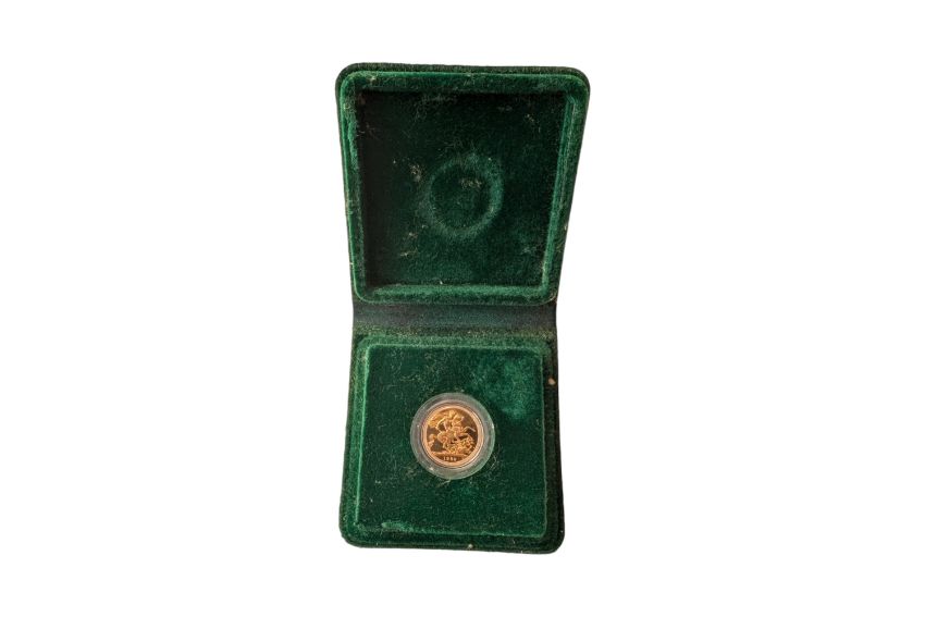 Obv: Second portrait (by Arnold Machin) - Bust of Elizabeth II facing right, crowned with the 'girls of Great Britain and Ireland tiara'. Rev: St. George on horseback, brandishing his sword having slayed the dragon, his broken spear discarded on the ground, 1980 and B.P., for designer Benedetto Pistrucci, in exergue. S. SC1, Marsh. 311A. Proof FDC, encapsulated in Royal Mint presentation case (no certificate).