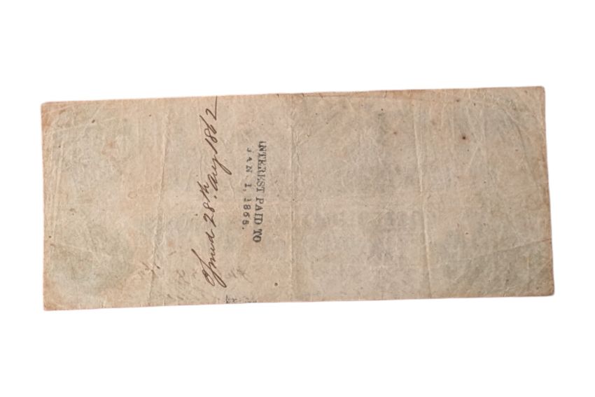 Date: 24/07/1862, S/N: 26707. Manuscript: Issued 28th aug 1862, Stamp: INTEREST PAID TO JAN. 1, 1865. P. 43. Fine.
