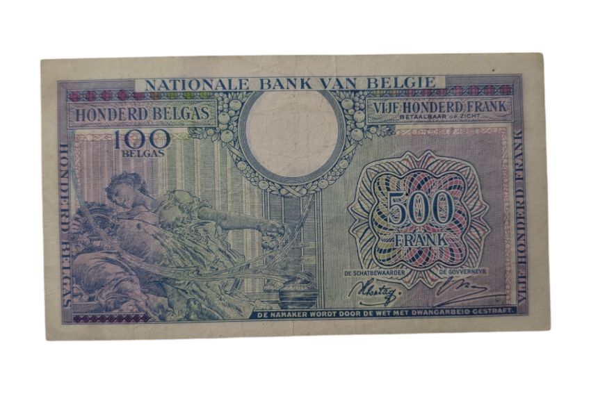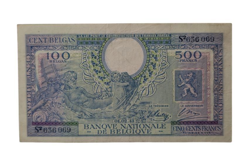 BELGIUM, 1943 500 FRANCS - 100 BELGAS.