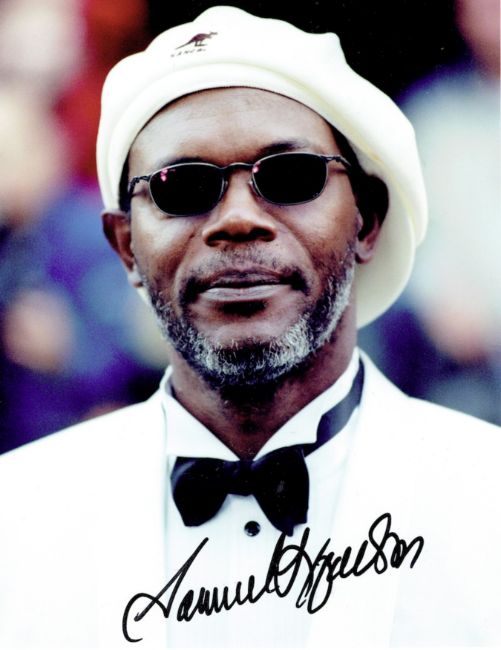 Colour, head and shoulders photograph, signed by Samuel L. Jackson in felt tip, along the lower margin, 10 x 8".