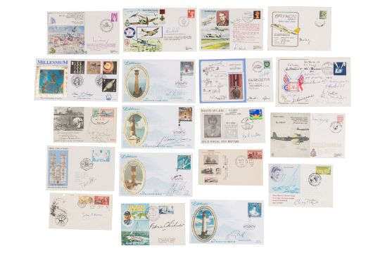 A large selection of commemorative covers signed by authors, artists, Tv and Cinema celebrities, musicians and other prominent figures, including: Ruth Rendell, Keith Waterhouse, Jean Plaidy, Nicholas Monserat, Kazuo Ishiguro, Colin Dextre, Bernard Cornwell, Alan Bennett, Roddy Doyle, John Le Carre, Jeffrey Archer, Barbara Cartland, Antonia Fraser, Sarah Duchess of York, Terence Cunio, Peter Blake, Anthony Caro, Ron Ferdinand (with original hand-drawn sketch of Dennis the Menace), Colin Davis, Pete Bets, Gerry Herman, Beverly Knight, Charles Groves, Bill Anderson, Alec Jeffrey, Mark Phillips, Julien Huxley, Robin Knox Johnson, Francis Chichester, Simeon Webb, Ian Fraser, Mike Golding, Chay Blyth, Edward Fox, Sylvia Sim, Douglas Fairbanks Jr, Barbara Eden, Doris Day, Judi Dench, Ian Carmichael, Barnard Cribbins, Roger Lloyd-Pack, Jacqueline Bisset, Samantha Bond, Richard Briers, Brigitte Bardot, Harry Secombe, Derek Jacobi Susan Hampshire, Michael Bentine, Vera Miles, Ken Dodd, Henry Winkler, Richard Todd, George Segal, David Suchet, Anthony Quinn. Robert Powell, Bill Nighty, Virginia Mckenna, Ken Loach, John Landis, Joanna Lumley, Ben Kingsley and a few others, v.s. (131)