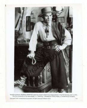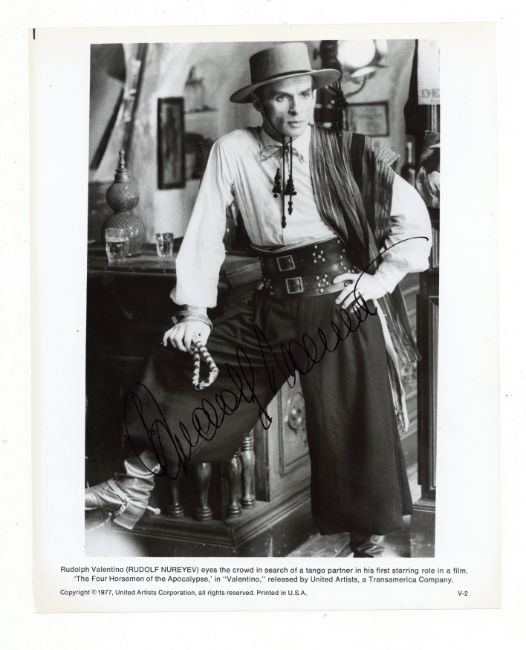 Glossy black and white promotional photograph of Nureyev as Valentino in the 1977 movie, signed in black ink across the image, in very good condition, 10 x 8".