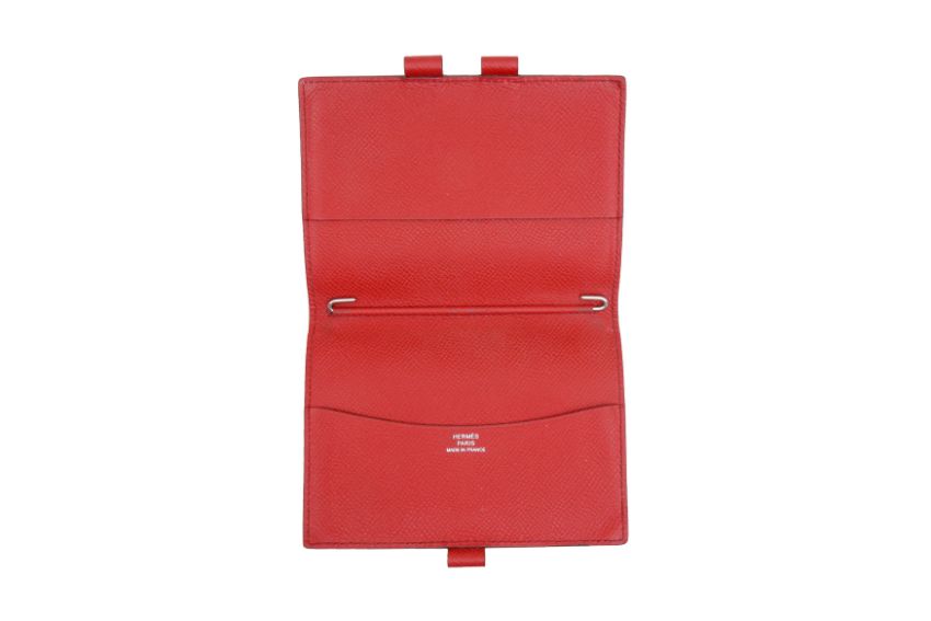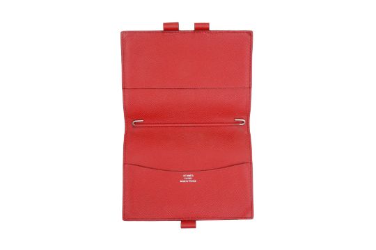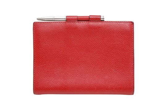 Hermes Red Epsom Agenda Cover And Silver Pen, palladium plated hardware, pen stamped 925 sterling silver
