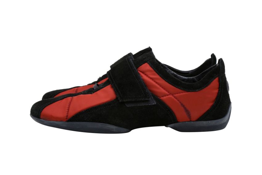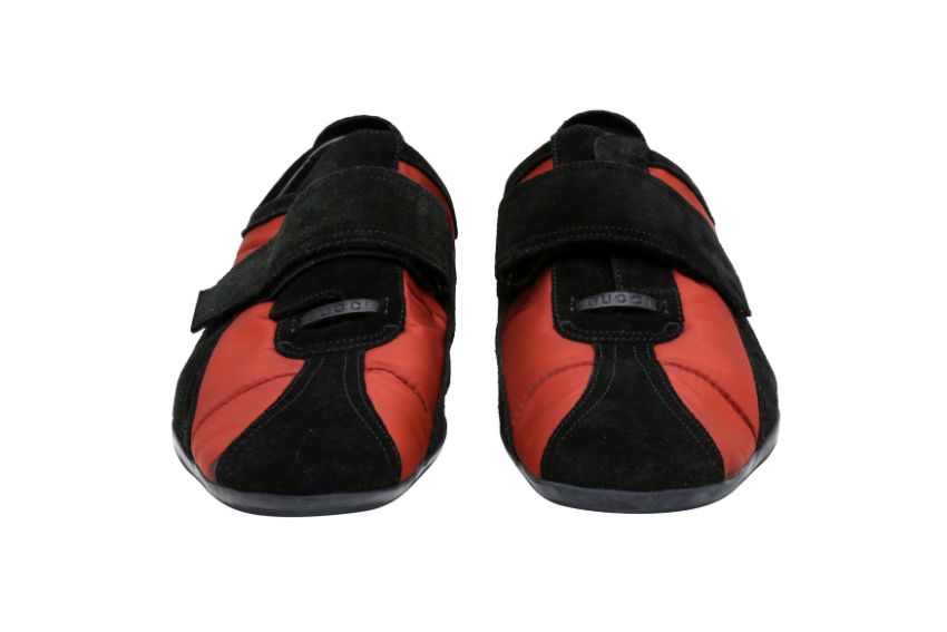 Gucci Men's Bi Colour Velcro Sneaker, red nylon, black suede, GG logo, labelled size 43.5 (UK 10)