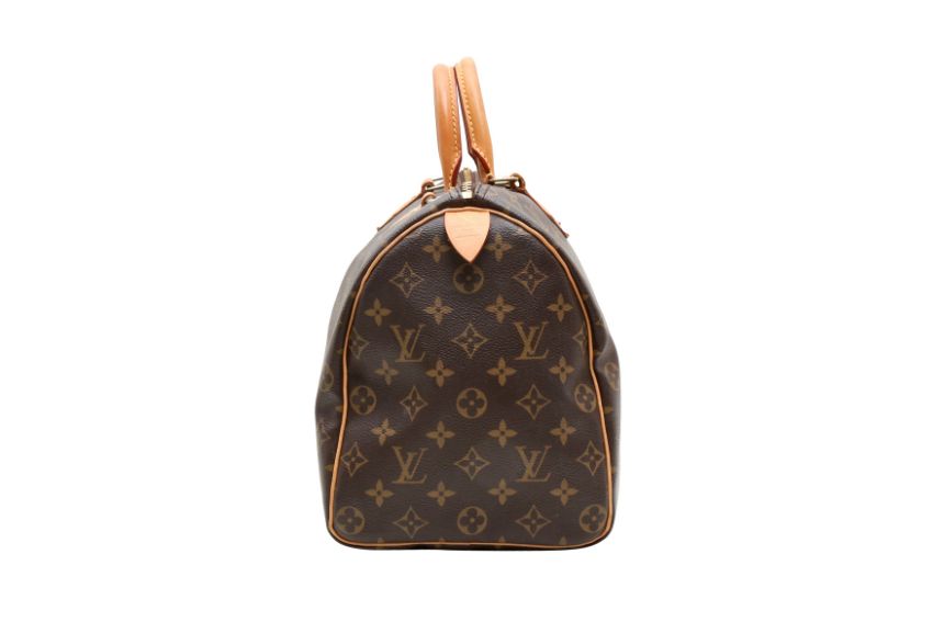 Louis Vuitton Monogram Speedy 35, coated canvas, vachetta leather trim and handles, gold tone hardware