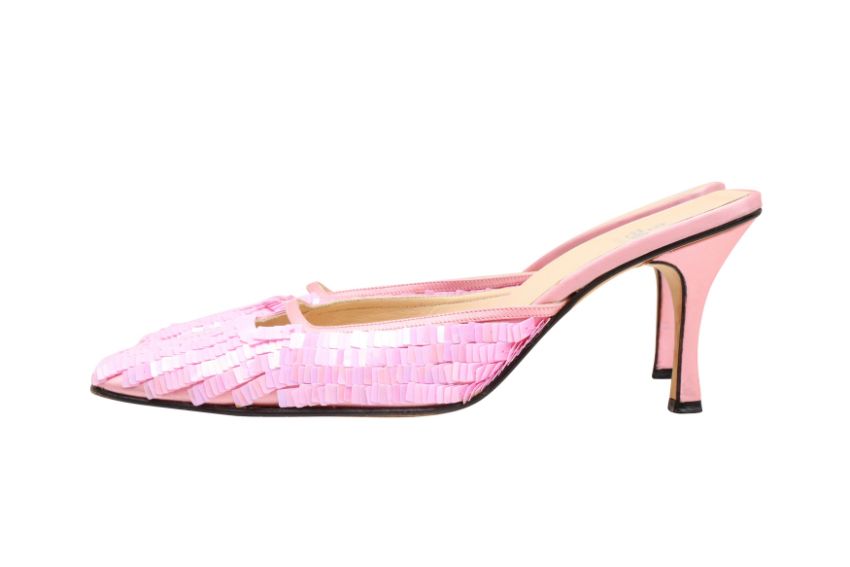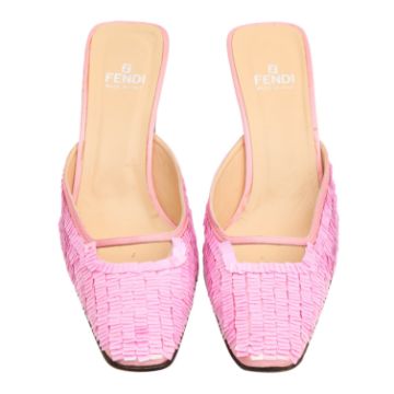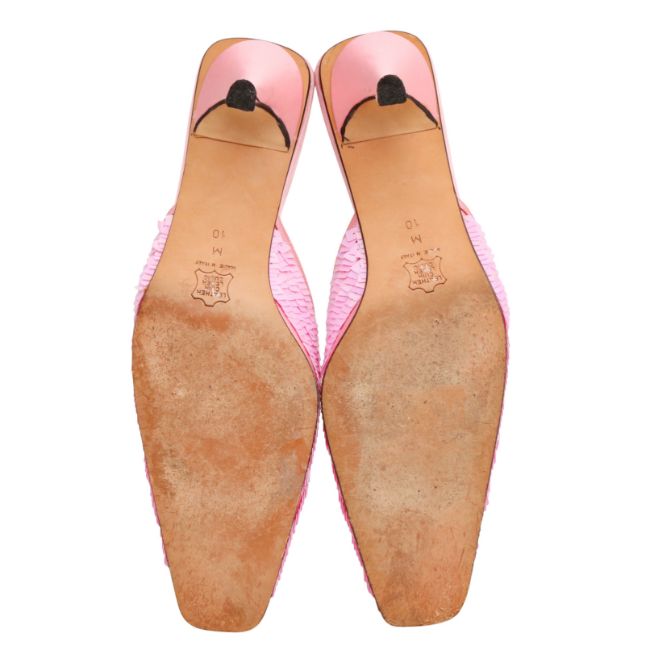 Fendi Pink Iridescent Sequin Heeled Mule, satin fabric trim, labelles size 10 (UK 7.5)