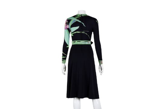 Leonard Navy Print Jersey Dress, green signature design, 1960's