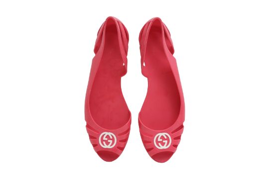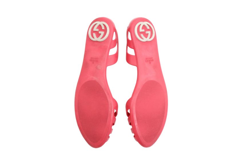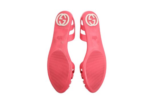 Gucci Pink GG Flat Jelly Sandal, moulded rubber, white GG logo, labelled size 39 (UK 6)