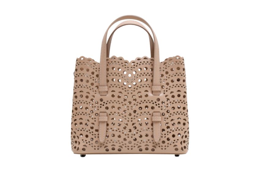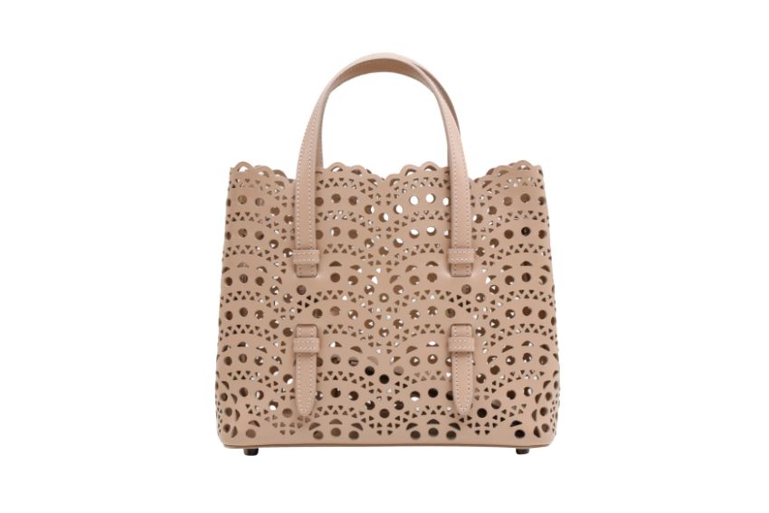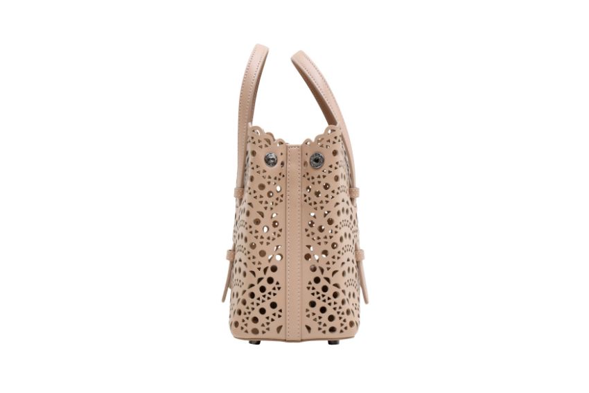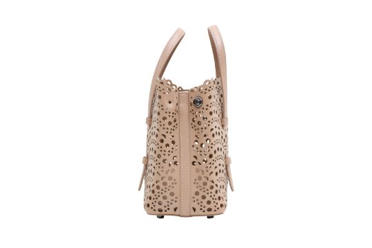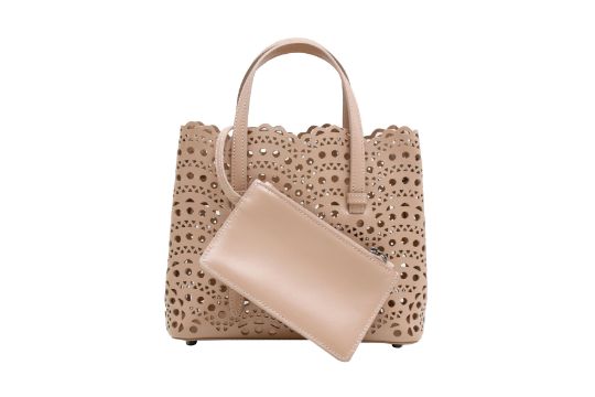Alaia Blush Mina 20 Mini Tote, laser cut calf leather, gunmetal tone hardware