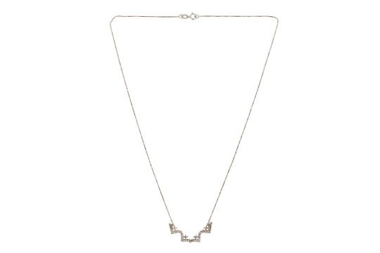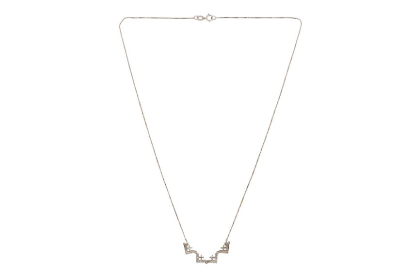 A JERUSALEM DIAMOND PENDANT NECKLACE, The single-cut diamond set pendant, made of four magnetic triangular-shaped articulated components, which link all together to form a square-shaped cross, to a fine box chain and a bolt clasp, pendant stamped Jerusalem 14K, maker's mark on the chain, stamped Italy 14K, length 40.0cm, weight 2.5 grams, together with its original purchase receipt