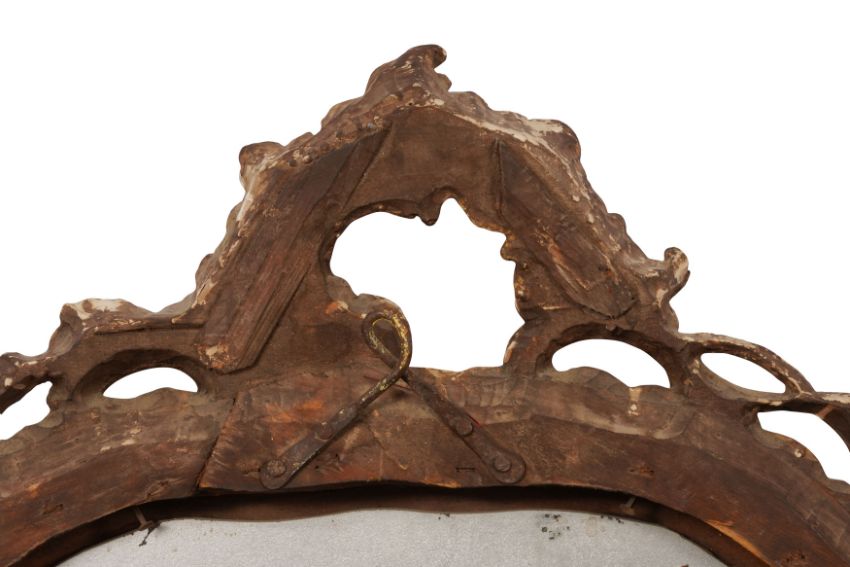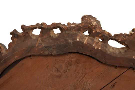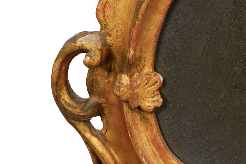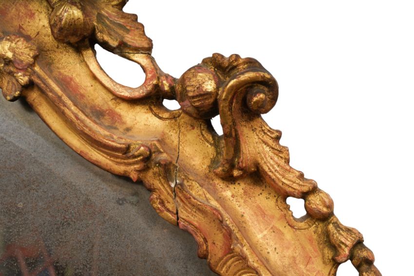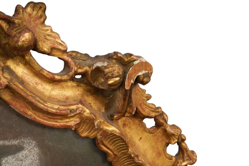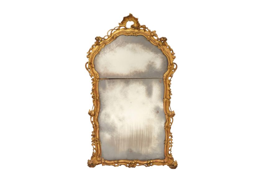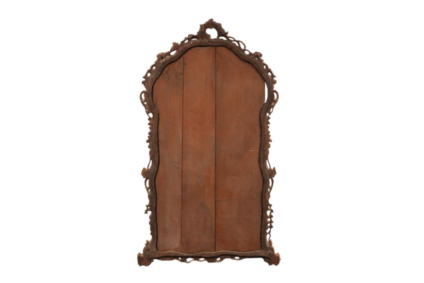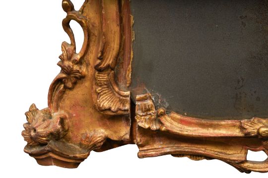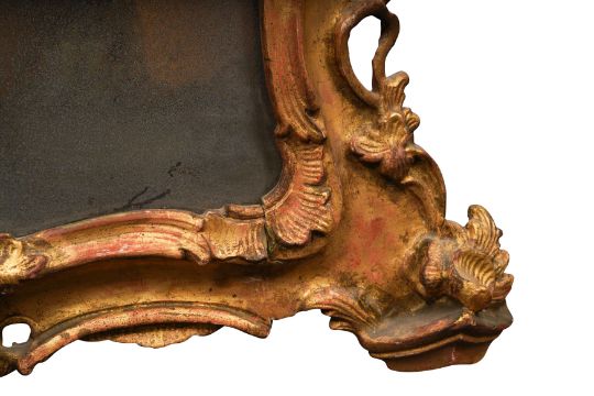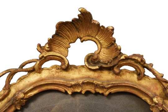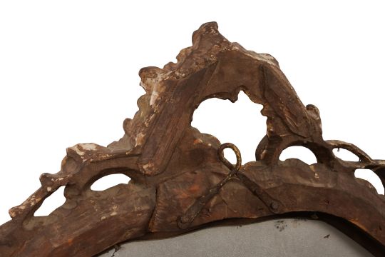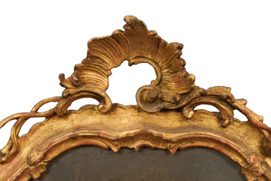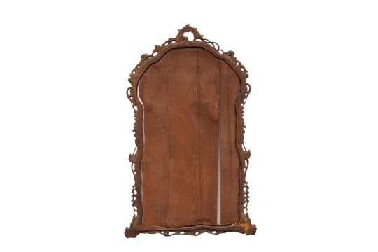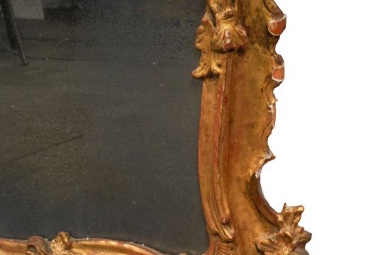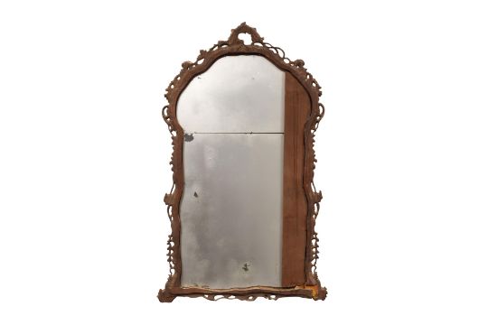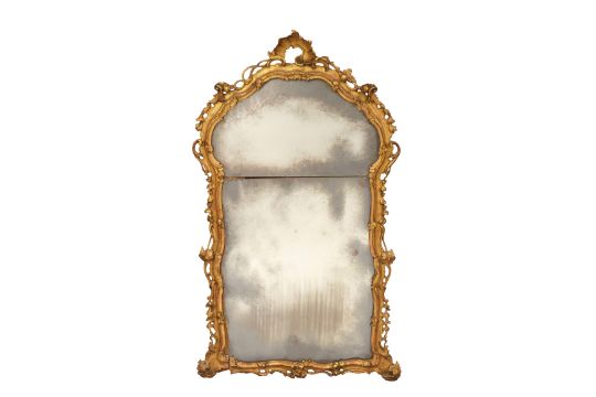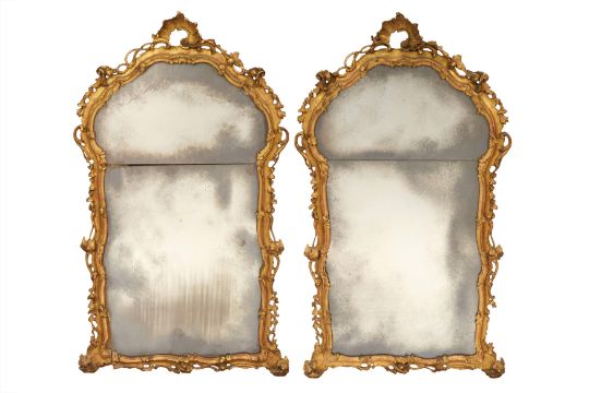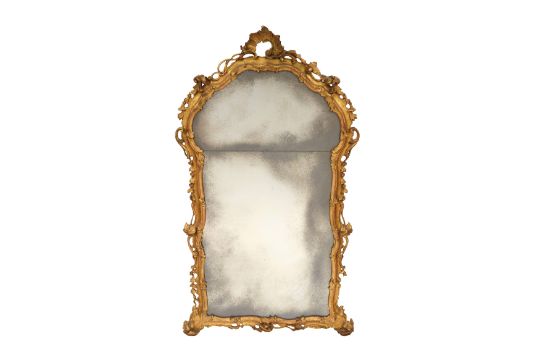 A PAIR OF GEORGE III PERIOD GILTWOOD MIRRORS, THIRD QUARTER 18TH CENTURY, possibly North Italian, the arched rectangular divided plates within a foliate-carved rocaille surround with pierced edges.