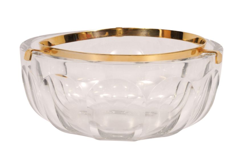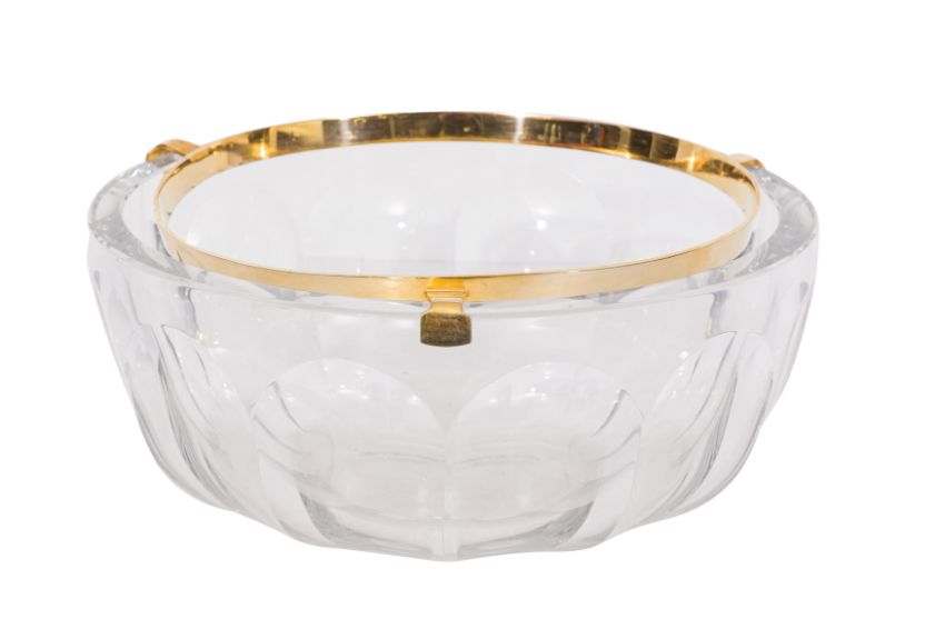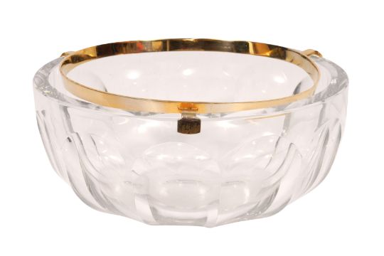 A BACCARAT CRYSTAL HARCOURT CAVIAR BOWL, with a gilt brass mount, etched mark to the underside. (Missing Liner).