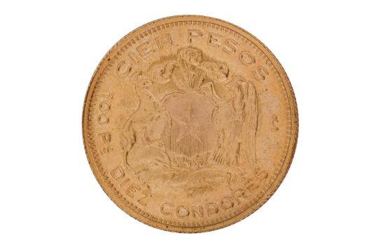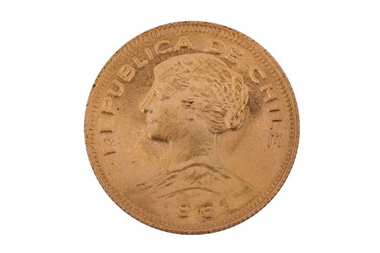 A CHILE (CHILEAN) 100 PESOS 1961 GOLD COIN.