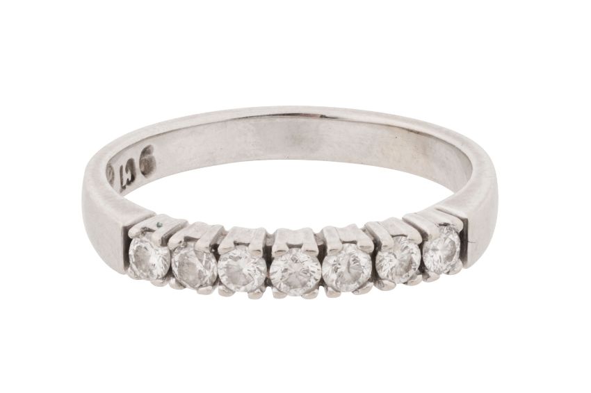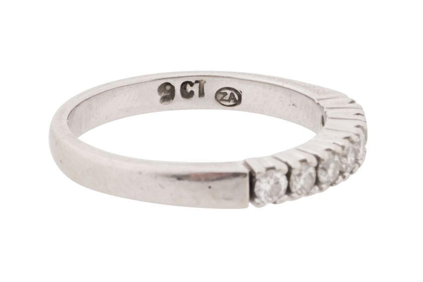 A DIAMOND HALF ETERNITY RING, Set with brilliant-cut diamonds weighing asppprox. 0.35 carat total, maker's mark, stamped 9C, ring size L½, weight 2.7 grams