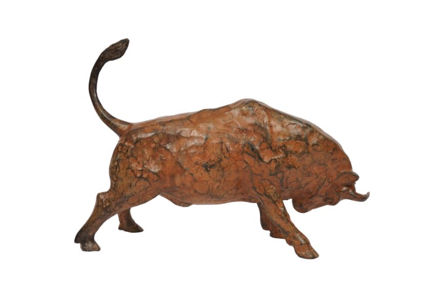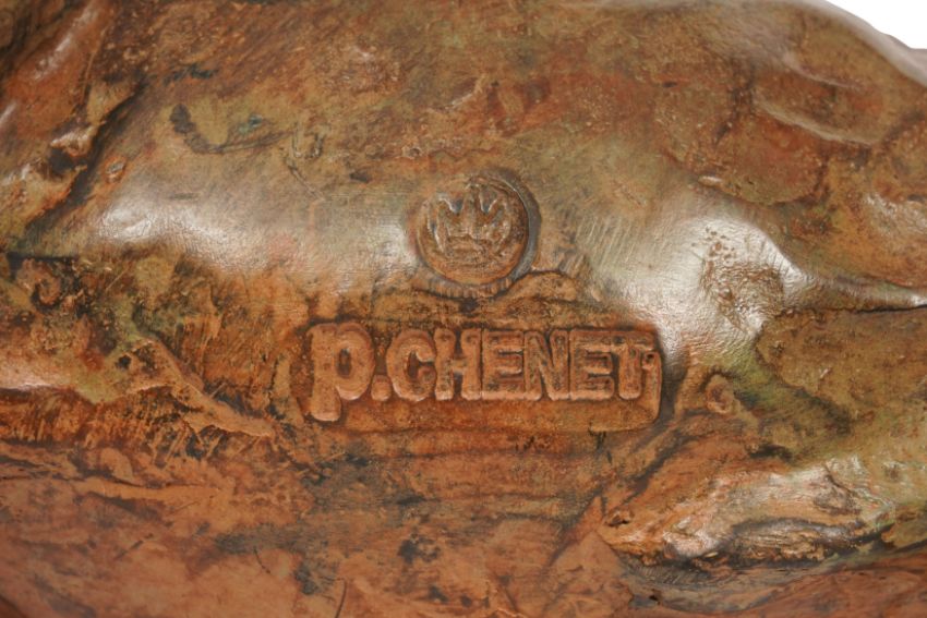 PIERRE CHENET FOUNDRY (FRENCH, 20TH CENTURY): A Bull figure, acid patinated bronze, signed and bearing crown foundry mark to underside.