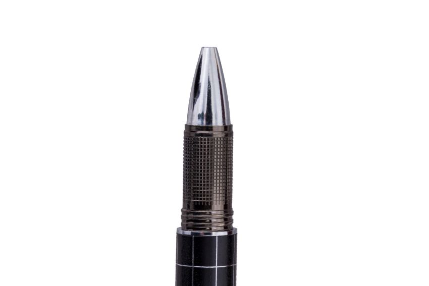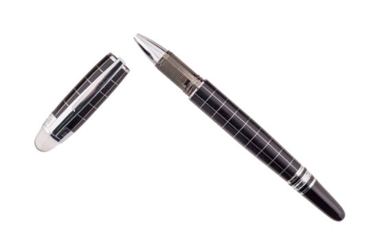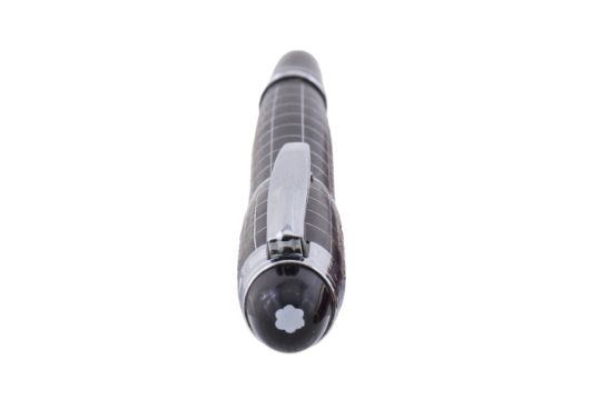 A MONTBLANC STARWALKER ROLLERBALL PEN, the black barrel with a checked pattern, and the cap with a lucite tip, band to the cap marked 'Montblanc'.