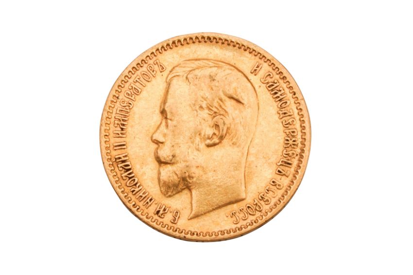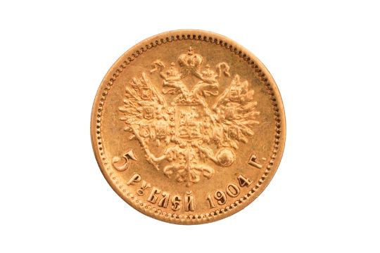 AN 1904 TSAR NICHOLAS II FIVE RUBLE COIN