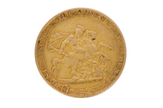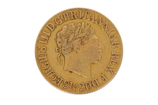AN 1820 KING GEORGE III SOVEREIGN, The obverse with laureate head portrait looking right. The reverse with St. George and dragon within Garter, edge milled.