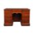 A LATE VICTORIAN MAHOGANY INVERTED BREAKFRONT KNEEHOLE DESK, the top with a tooled brown leather skiver and a moulded edge, over a frieze drawer above carved brackets, flanked by two cupboard doors each with four faux graduated drawers and turned knob handles, on plinth bases with moulded detail.
