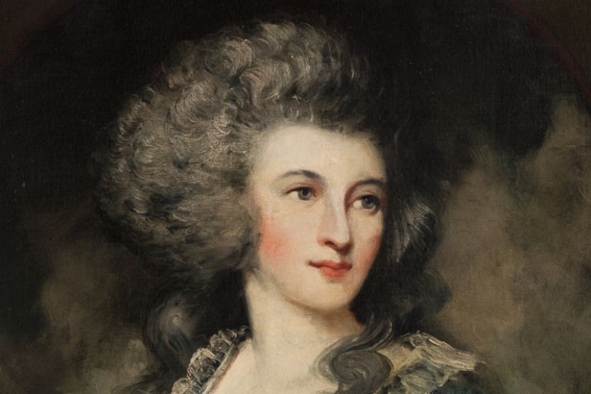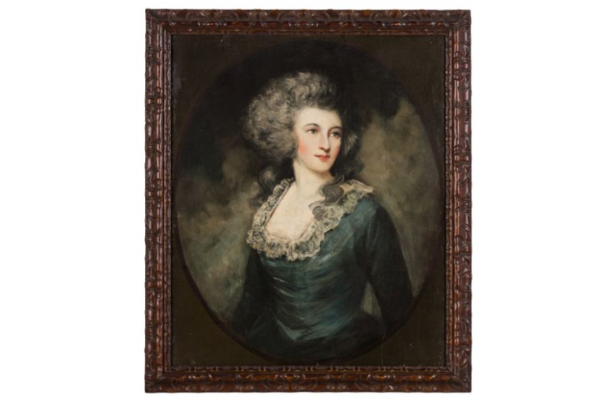 Portrait of a Lady, half-length, wearing a blue dress, with curled powdered hair, in a feigned oval