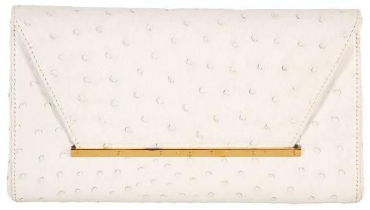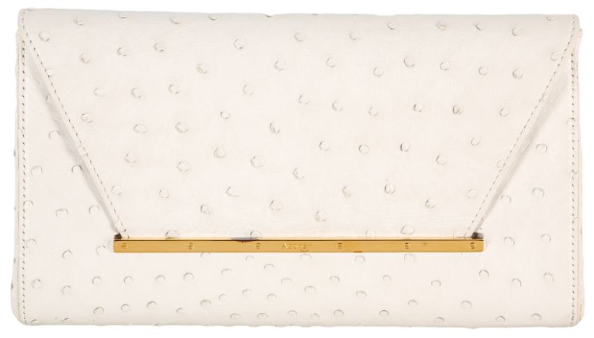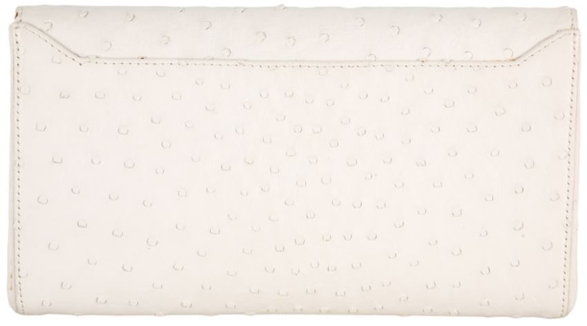 λ Asprey White Ostrich Envelope Clutch, flap closure, gold tone hardware