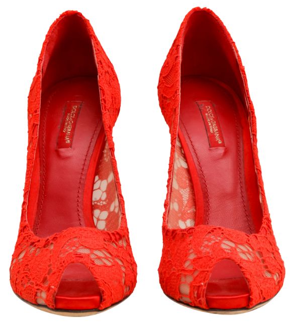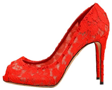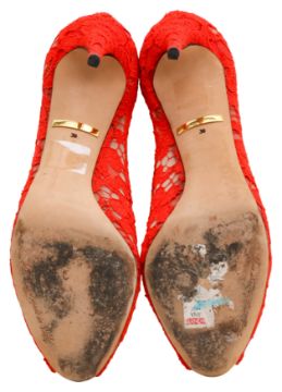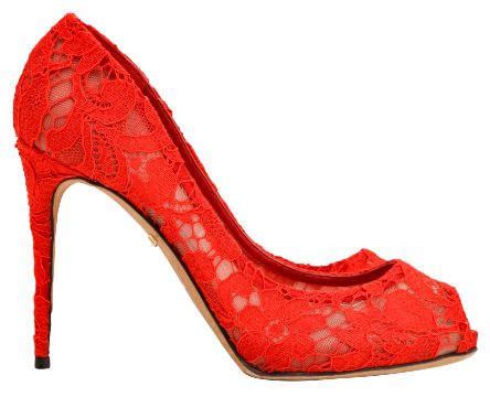 Dolce & Gabbana Red Lace Peep Toe Pump, mesh and lace fabric, labelled size 39 (UK 6)