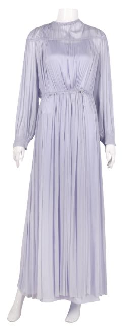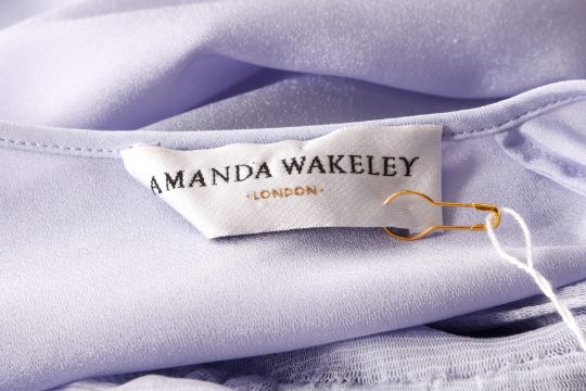 Amanda Wakeley Lavender Silk Grecian Maxi Dress, sheer fabric, detachable lining, silver tone hardware, labelled UK 12