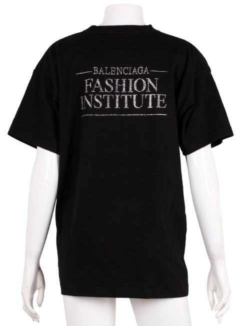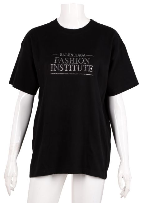 Balenciaga Black Unisex 'Fashion Institute' T-Shirt, rhinestone embellishment, labelled size small