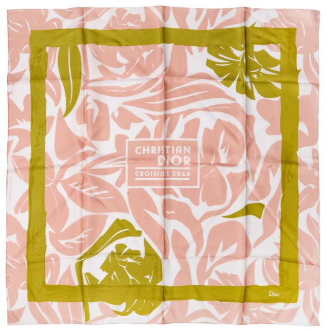Christian Dior 'Croisiere 2016' Silk Scarf, abstract design, pink, green and white