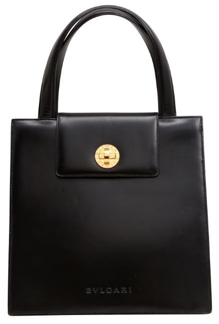 Bvlgari Black Box Top Handle Tote Bag, smooth calf leather, logo buckle, gold tone hardware