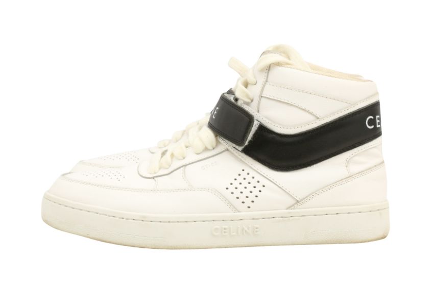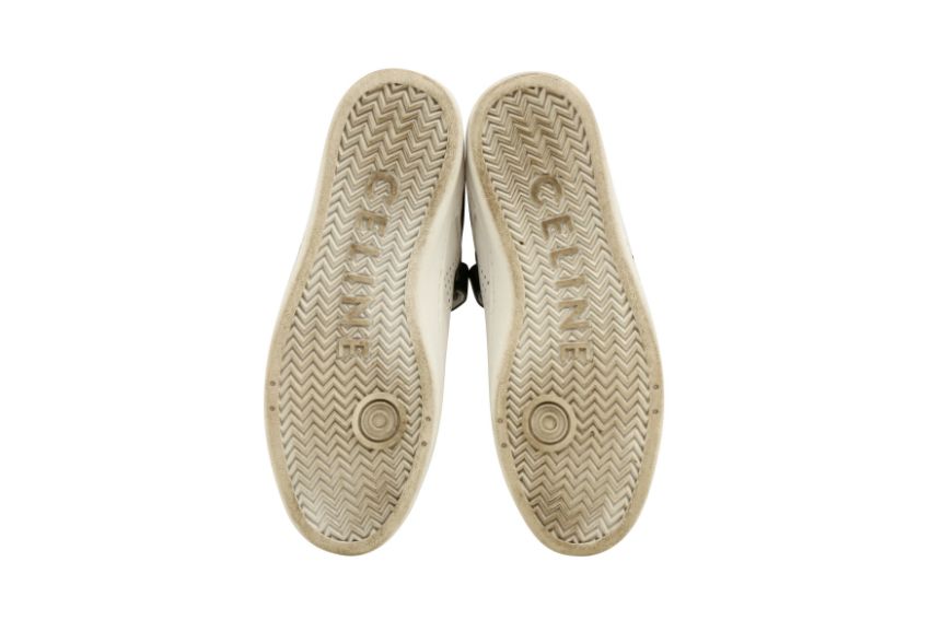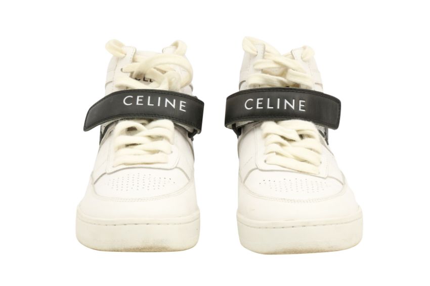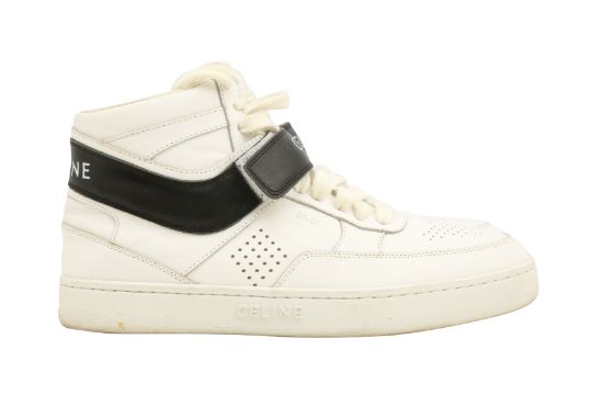 Celine White Lace Up Sneaker, calf leather, black trim, labelled size 40 (UK 7)