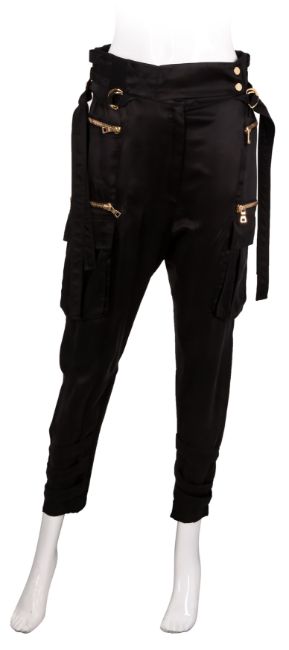 Balmain Black Tapered Cargo Trouser, gold tone hardware, labelled size 38