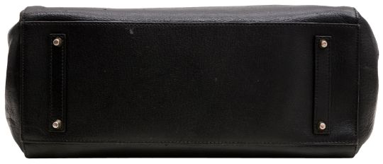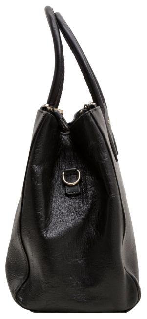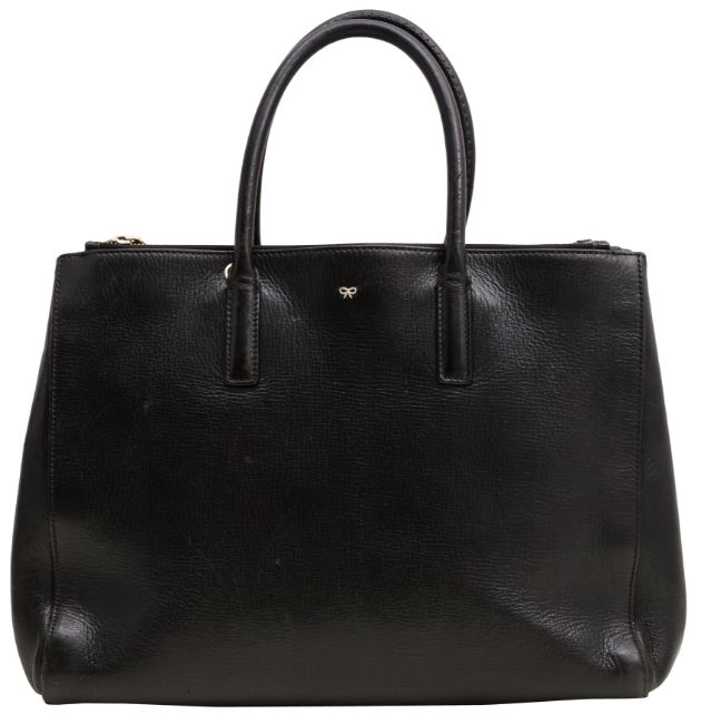 λ Anya Hindmarch Black Ebury Tote, goat leather, taupe leather strap, python interior trim, gold tone hardware