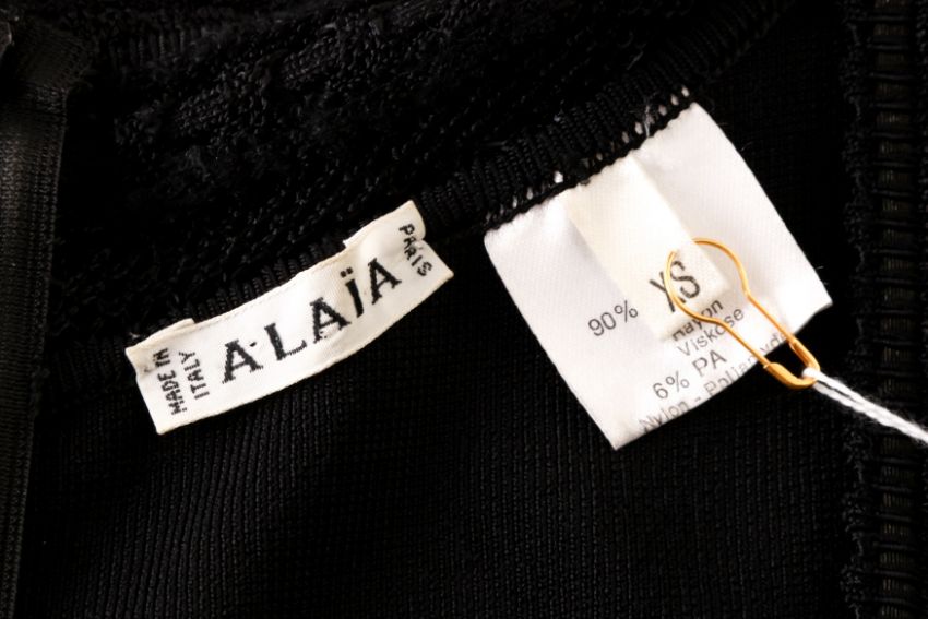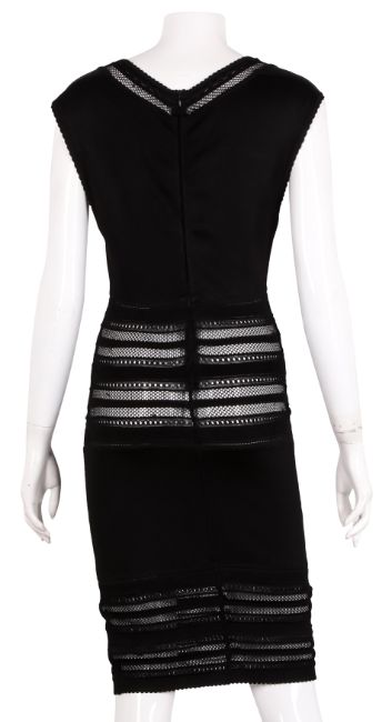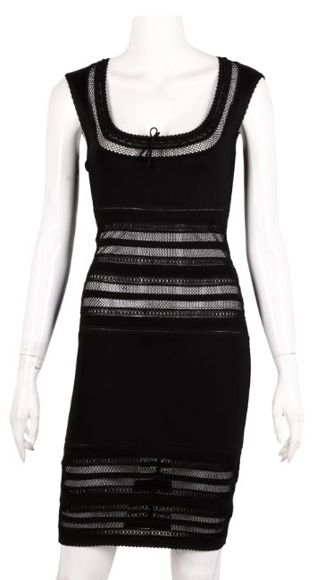 Alaia Black Crochet Insert Knit Dress, body con fit, sheer insert, labelled size extra, 1990's