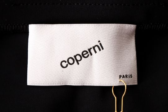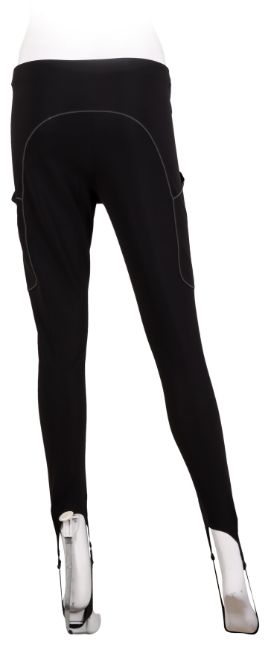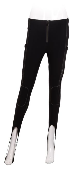 Coperni Black Techno Logo Stirrup Pant, gunmetal tone hardware, labelled size UK 10